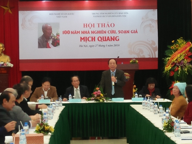 Ngày 27-1, tại Hà Nội đã diễn ra hội thảo “100 năm nhà nghiên cứu soạn giả Mịch Quang”. Đây là hoạt động do Hội Nghệ sĩ Sân khấu Việt Nam đã phối hợp với Trung tâm nghiên cứu bảo tồn và phát triển văn hóa dân tộc tổ chức nhằm tri ân những đóng góp to lớn của ông đối với nghệ thuật sân khấu nói chung, nghệ thuật kịch hát dân tộc nói riêng.