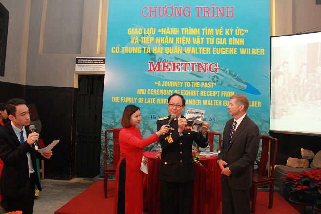 Ngày 17-1, ông Thomas Eugence Wilber, con trai của cố phi công Hải quân Mỹ Walter Eugene Wilber (từng bị bắn rơi và giam giữ gần 5 năm tại nhà tù Hỏa Lò) đã đại diện gia đình đến trao tặng kỷ vật lần thứ 2 cho di tích lịch sử nhà tù Hỏa Lò. Những câu chuyện mà ông Thomas kể lại trong hành trình 12 lần đến đất nước Việt Nam để tìm hiểu những thông tin liên quan đến người cha và đồng đội của ông trên chiếc máy bay bị bắn hạ năm nào đã gây được nhiều xúc động.