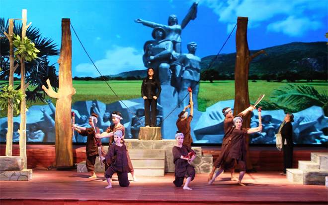 | Cảnh trong vở diễn “Hương Sứ đất Hòn” của đơn vị tỉnh Kiên Giang tham gia Hội thi. |