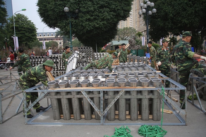 | Vào sáng 23-1 tức ngày 29 tháng Chạp Âm lịch, trận địa pháo bắt đầu được lắp đặt tại các địa điểm bắn pháo hoa ở Hà Nội. |