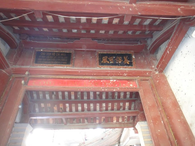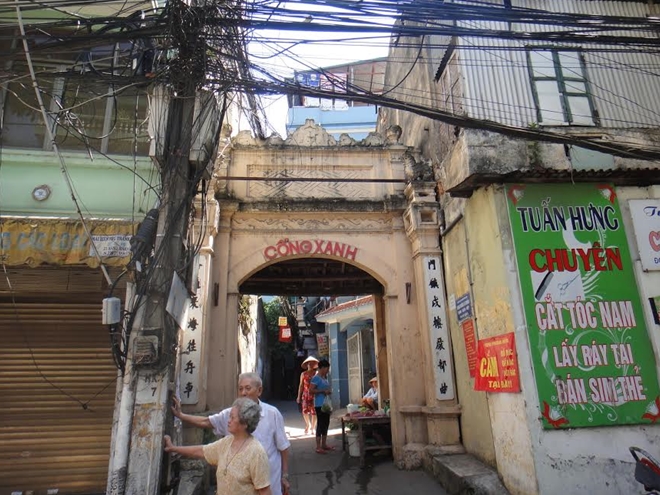 | Vẻ cổ kính của Cổng Xanh có lẽ chỉ còn lại ở câu đối chữ nho hai bên cổng. |