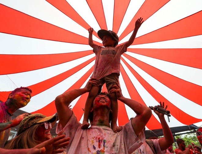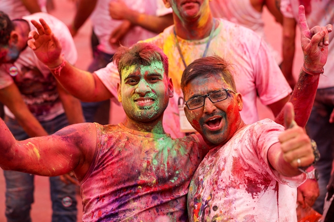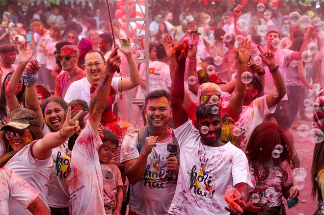 | Ném bột màu Ấn Độ đã gắn kết mọi người lại với nhau, không phân biệt màu da, tôn giáo... |