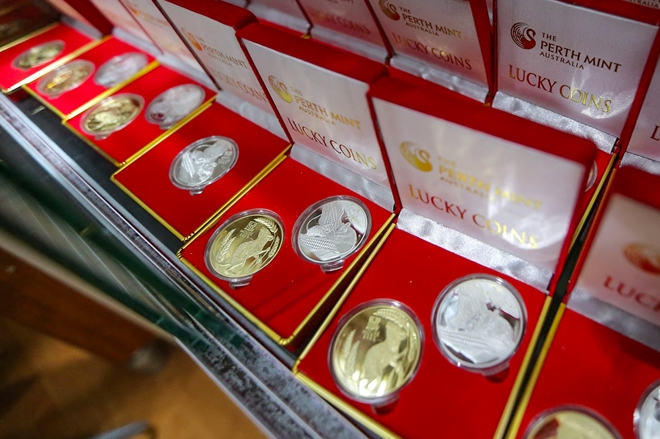 | Ngoài tiền xu, tiền giấy thì các biểu tượng thần tài cũng được kinh doanh |