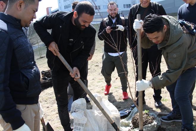 | Trước đó, các đại biểu tham gia Liên hoan Pan-European Marathon 2017 đã cùng các bạn sinh viên FEFU trồng nhiều cây xanh để chào đón mùa xuân. |