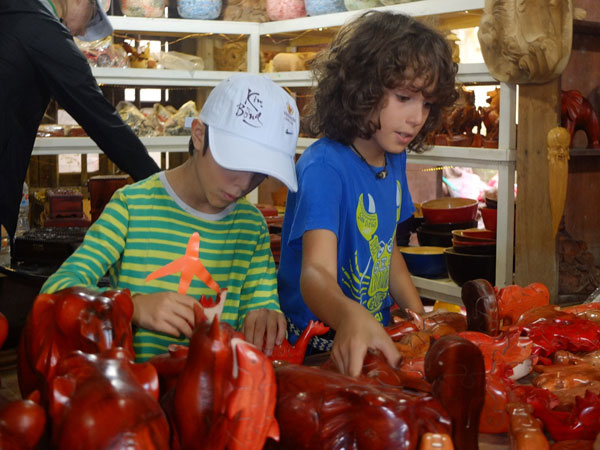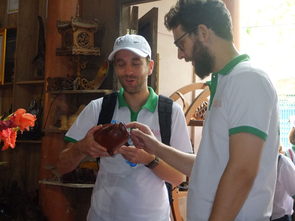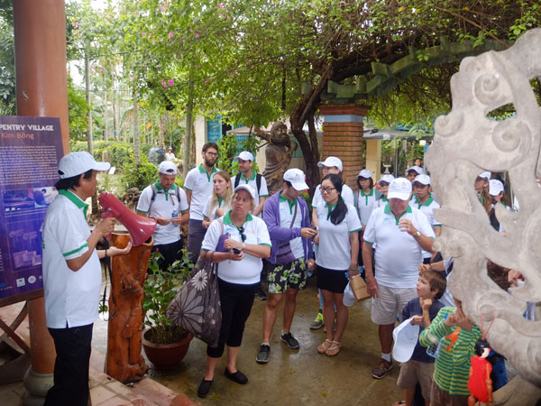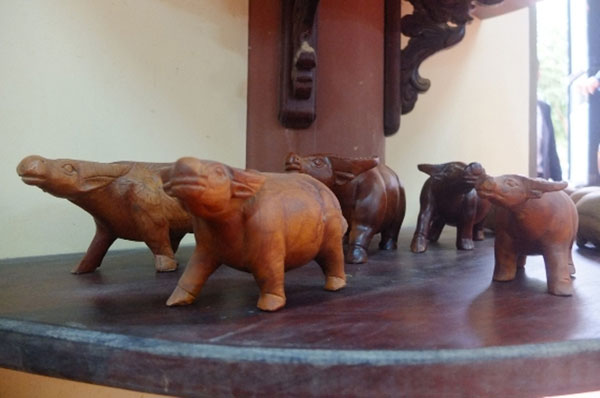 | Du khách có dịp ghé thăm nơi trưng bày nhiều sản phẩm mộc Kim Bồng. |