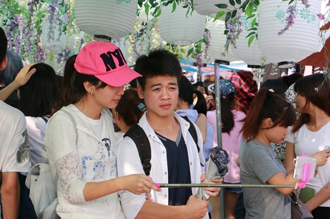 Nhiều bạn trẻ cố gắng tạo dáng trước hoa giả!