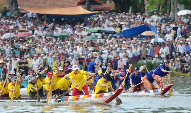 | Đua ghe đã trở thành ngày hội trên sông Hương trong mỗi dịp Tết Độc lập của đất nước. |