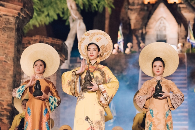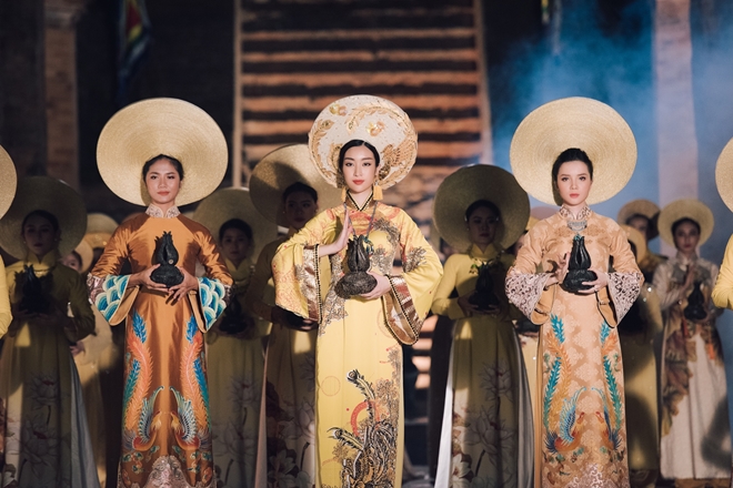Nằm trong khuôn khổ của Lễ hội, Hoa hậu Đỗ Mỹ Linh cùng Hoa khôi Thúy Vi và vũ đoàn đã hóa thân trọn vẹn vào bài múa dâng trầm độc đáo ngay tại không khí linh thiêng của tháp bà Ponagar.