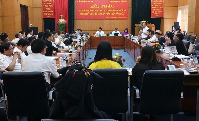 Ngày 30-9, tại thành phố Tuyên Quang, Bộ Văn hóa, Thể thao và Du lịch phối hợp UBND tỉnh Tuyên Quang tổ chức hội thảo “Bảo tồn và phát huy bản sắc văn hóa dân tộc Dao trong bối cảnh hội nhập và phát triển đất nước”.