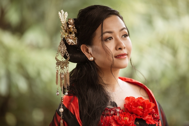 | GĐSX Trần Uyên Phương tạo hình vai Trưởng Công chúa trong MV Mỹ nhân vào bếp. |