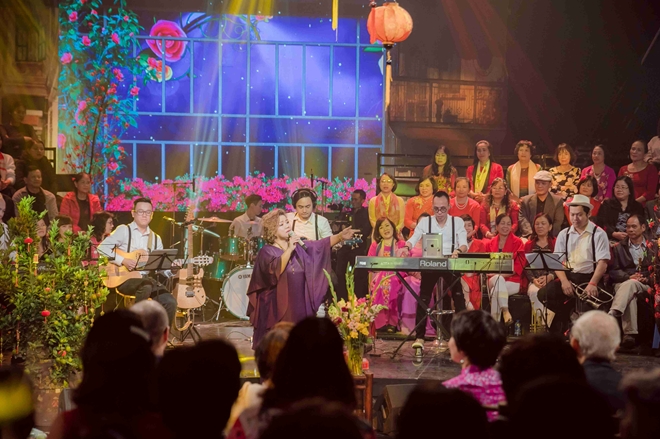 | Ngoài kể chuyện Tết xưa, NSND Thanh Hoa còn hát ca khúc "Làng lúa làng hoa" |