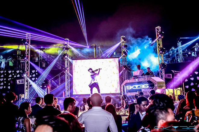 Trước màn trình diễn pháo hoa, SKY 36 đã đốt cháy bầu không khí tiệc tùng của Đà Nẵng bằng chương trình “Siêu ánh sáng” những màn trình diễn nghệ thuật đặc sắc, đặc biệt là sự xuất hiện của Violinist FatB- phù thủy vĩ cầm điện tử hay những màn nhảy cực lôi cuốn và mạnh mẽ của nhóm nhảy Dreamboys.
