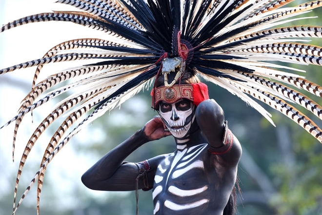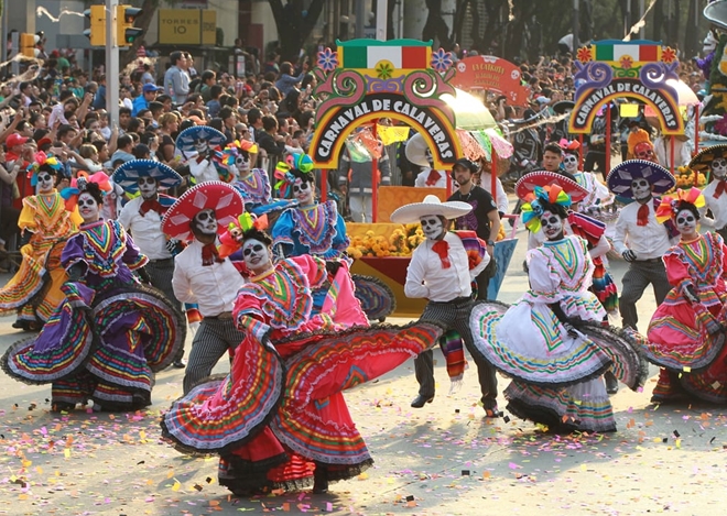 Không rùng rợn và tang thương như nhiều người tưởng tượng, thủ đô Mexico City những ngày này chìm trong biển màu sắc với những màn hóa trang kỳ thú để chào mừng ngày lễ có một không hai mang tên "Dia de los Muertos" .