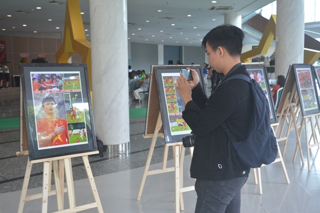 | Triển lãm thu hút các bạn trẻ yêu bóng đá. |