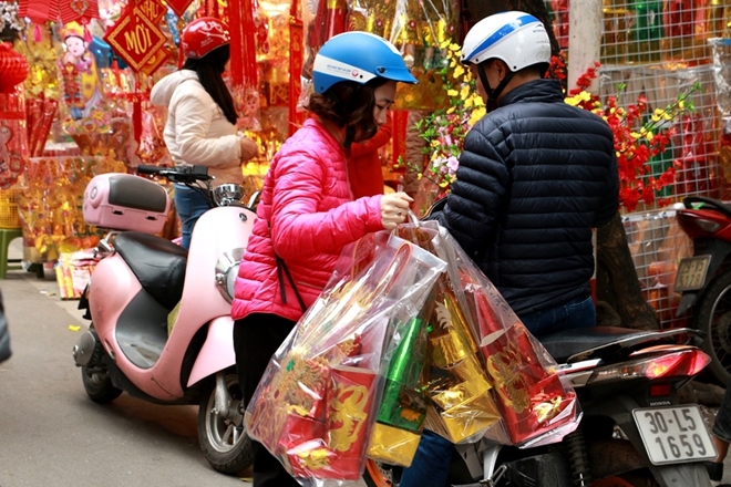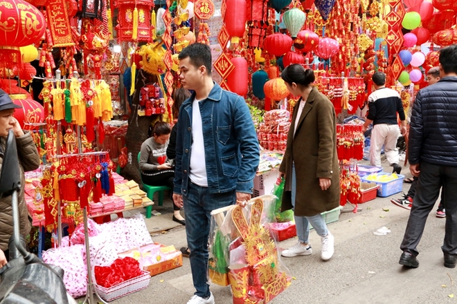 Một chủ cửa hàng trên phố Hàng Mã cho biết lượng khách tới đây trong ngày mai và ngày kia còn tăng lên cao hơn nữa..., vì vậy nhiều người đang tính mua thêm hàng để phục vụ nhu cầu lớn bùng phát.