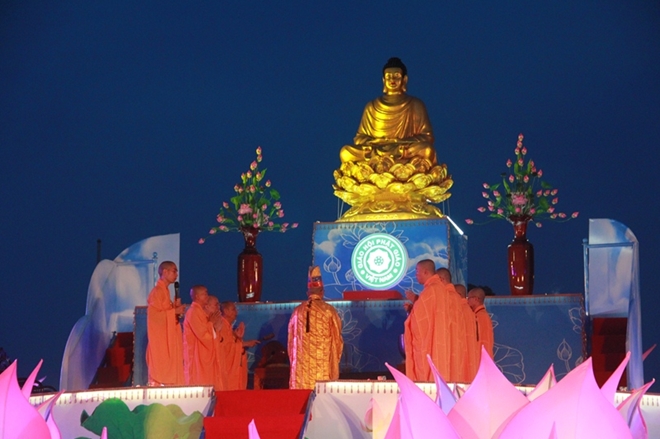 Ngoài những tiết mục hát múa “Dòng máu Lạc Hồng”, “Việt Nam gấm hoa” và điệu hò mái nhì - Nam Bình... điểm nhấn của chương trình là phần biểu diễn nghệ thuật thắp ánh sáng của lễ hội truyền đăng, cử hành nghi lễ cầu nguyện và thả đèn hoa trên sông Hương. Hằng trăm tăng ni, phật tử, quan khách xếp hàng và truyền tay nhau khoảng 5.000 ngọn đèn từ phía lễ đài chính xuống bờ sông Hương; cùng với đó là 25 thuyền hoa, mỗi thuyền 1.000 hoa đăng được thả suống dòng sông trong thanh tịnh, trang nghiêm, thể hiện sự lung linh, huyền ảo của ánh sáng hoa đăng về đêm.