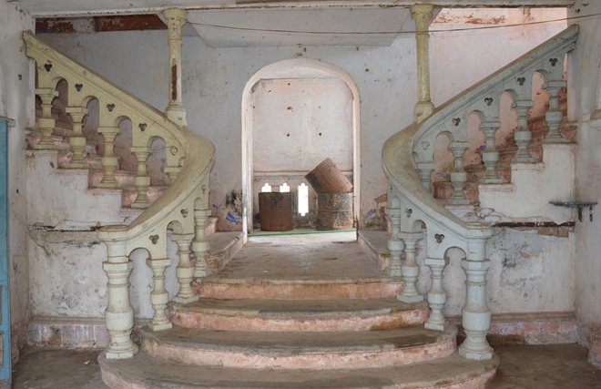 | Cầu thang lên lầu 1 còn khá nguyên vẹn. |