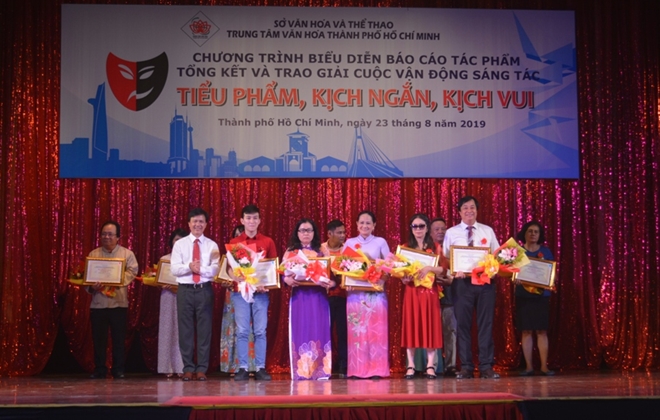 Tối 23-8, Trung tâm Văn hóa TP Hồ Chí Minh – Sở Văn hóa và Thể thao TP Hồ Chí Minh đã tổng kết, trao giải Cuộc vận động sáng tác tiểu phẩm, kịch ngắn, kịch vui năm 2019.
