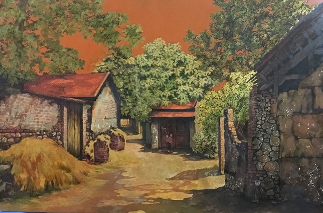 Làng quê thanh bình trong tranh Vũ Việt Cường