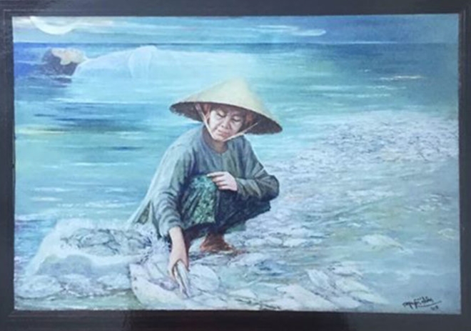 Họa sĩ Nhân cho biết ông đã ủy quyền cho người nhà của một vị khách đã trả 700 USD mua bức tranh “Biển chết” thay ông đi nhận tranh.