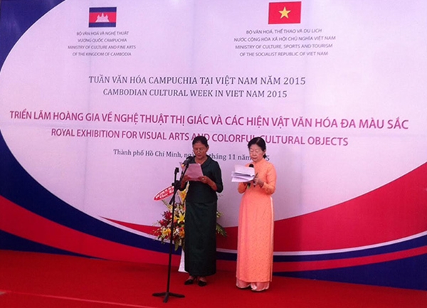 Phát biểu tại buổi lễ, bà HolPhoeem Na Ri, Phó Tổng Cục Trưởng Tổng Cục Kỹ thuật Bộ Văn hóa và Nghệ thuật Campuchia cho biết, các tác phẩm được trưng bày tại triển lãm là những thành quả lao động nghệ thuật theo truyền thống và phong tục tập quán của người Khmer truyền từ qua nhiều đời và những người con Khmer hiện nay đã và đang ra sức giữ gìn và tiếp tục sản xuất theo những thiết kế cấu trúc của hàng ngàn đền đài cổ tại Vương quốc Campuchia. Thông qua triển lãm này, hy vọng nhân dân Việt Nam sẽ có thêm hiểu biết về nghệ thuật văn hóa Khmer và thắt chặt thêm mối quan hệ hữu nghị giữa 2 dân tộc.