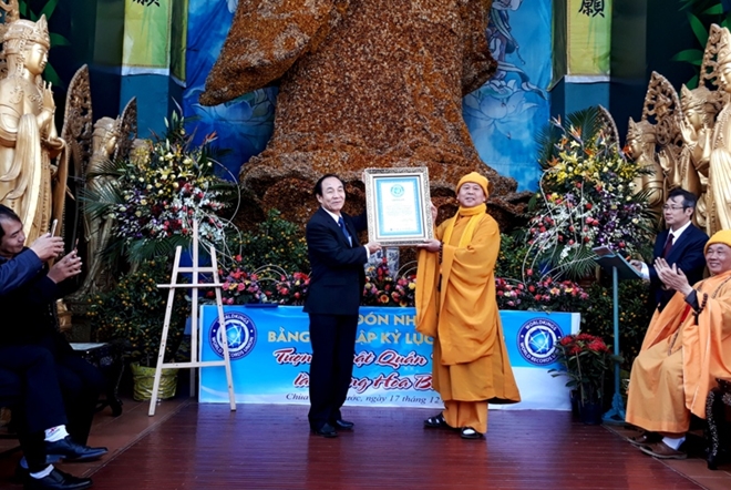 Ngày 17-12, chùa Linh Phước, phường 12, TP Đà Lạt (Lâm Đồng) đã long trọng tổ chức lễ đón nhận kỷ lục thế giới về công trình tượng Phật Quán Thế Âm bằng hoa bất tử.