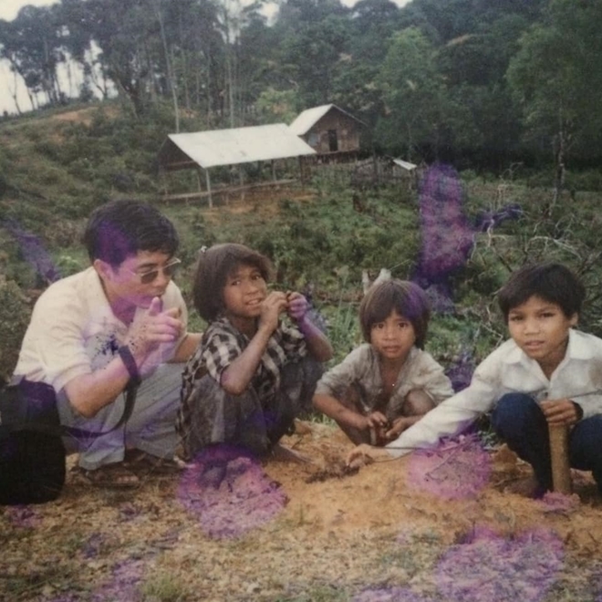 | Nhà văn Trung Trung Đỉnh trong một lần trở lại chiến trường Tây Nguyên. |