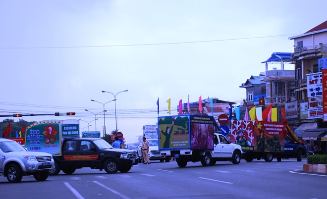 | Đoàn xe các đội tuyên truyền xuất quân trên tuyến đường huyền thoại Trường Sơn – Hồ Chí Minh hướng về tỉnh Đắk Nông |
