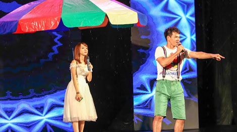 2 danh hài Minh Vượng, Xuân Bắc đội mưa biểu diễn cho thiếu nhi