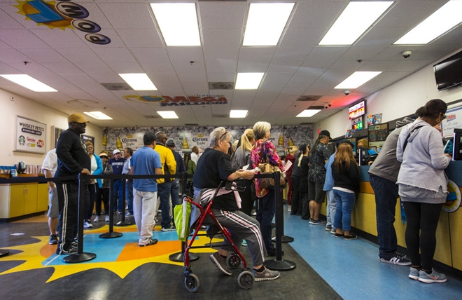 | Người dân xếp hàng chờ mua xổ số Mega Millions. Ảnh: ITN |