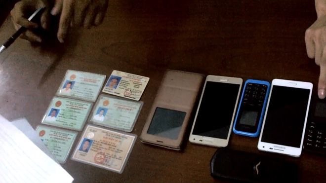 | CMND, giấy phép lái xe giả thu được của Tuấn "tôm". |