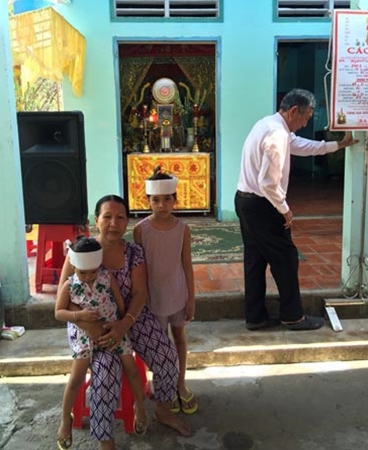 Hình ảnh hai đứa con nhỏ đáng thương trong đám tang của nạn nhân. |