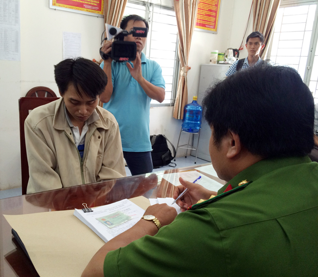 | Hiếu cúi gằm mặt khai nhận hành vi phạm tội tại cơ quan Công an. |