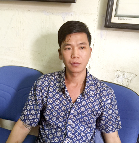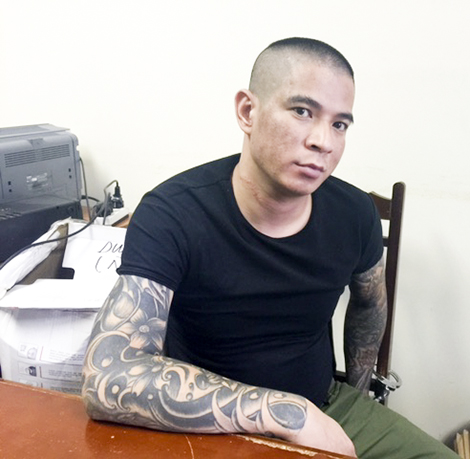 | Đối tượng Trần Thanh Hải (trái) và đàn em tại cơ quan Công an. |