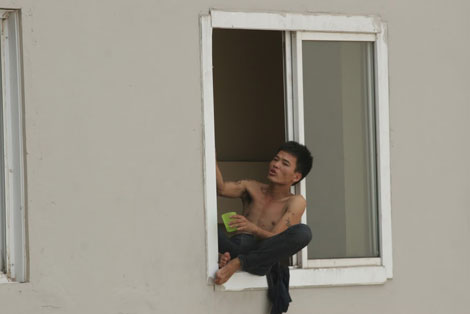 | Vũ Văn Tuyền trên cửa sổ tầng 21. |
