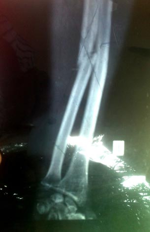 | Ảnh chụp xương tay ông Thành bị gãy. |