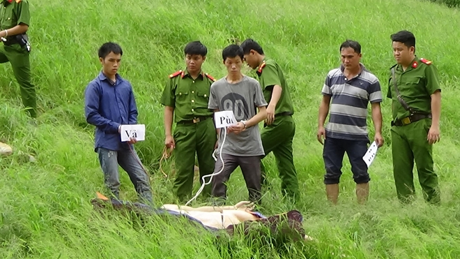 Tiếp đó, Pùa và Vả khênh nạn nhân thả xuống mép nước ở cạnh bờ. Trong lúc này, đối tượng Giàng A Cở tìm cách xóa dấu vết ở trong lán. Đối tượng lấy chiếc vỏ chăn màu lau các vết máu dính trên sàn lán rồi mang vỏ chăn ra chỗ ông Khư nằm.