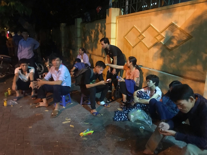 | Người thân của S. ngồi chờ nhận thi thể của nạn nhân. |