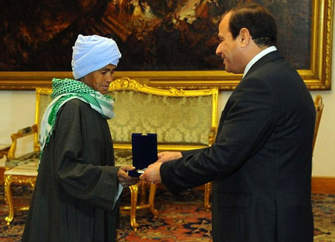Tổng thống Ai Cập trao bằng khen cho bà Sisa Abu Daooh. |