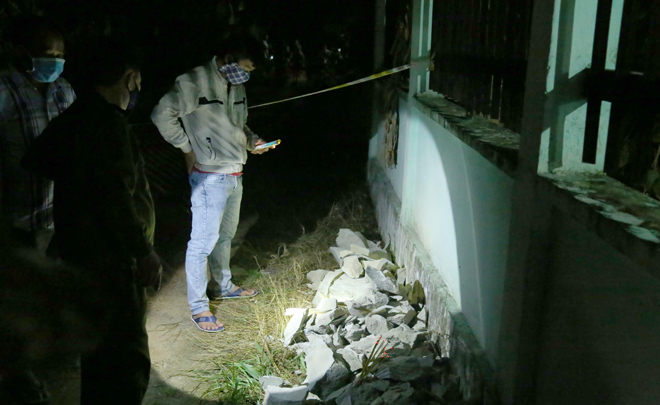 | Cán bộ công an thu thập dấu vết ở hiện trường. |
