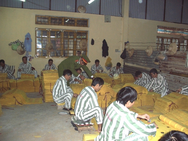 | Các phạm nhân trại giam Nam Hà cải tạo lao động ở đội làm hàng mã. |