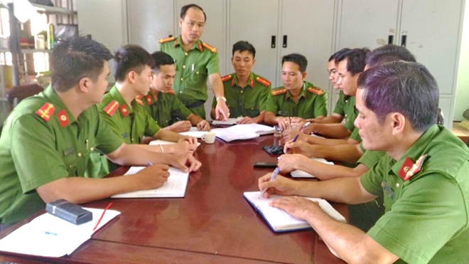 | Cán bộ, chiến sỹ Đồn Công an Đông Bắc Sông Cầu triển khai nhiệm vụ bảo vệ ANTT trước, trong và sau Tết Nguyên đán Canh Tý. |