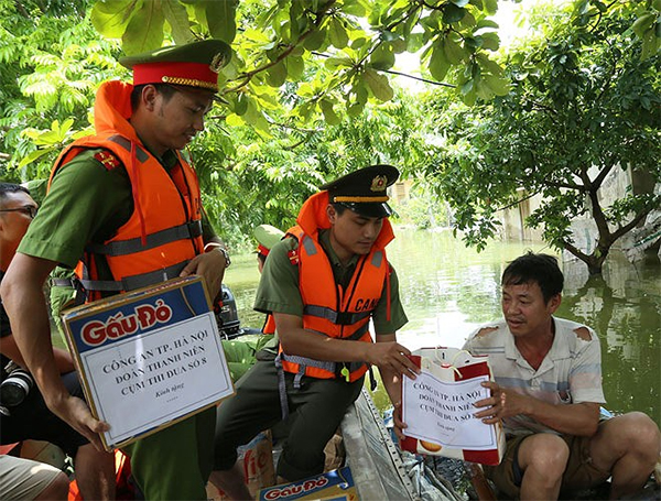 Ngoài ra, Công an TP Hà Nội cũng phối hợp với Công an huyện tổ chức thăm hỏi, tặng quà, động viên các gia đình có nạn nhân bị chết, bị thương và các hộ gia đình bị ngập úng…