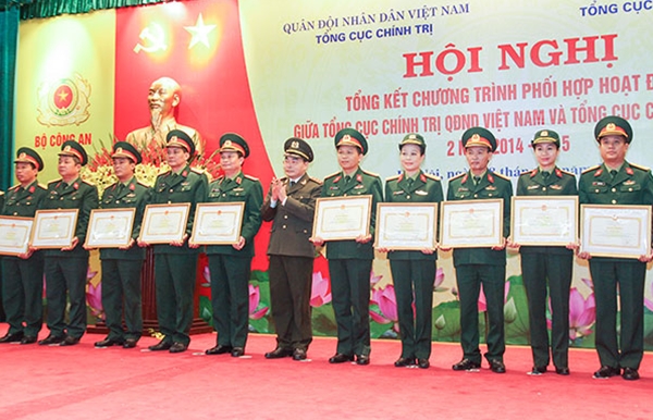 | Thứ trưởng Bùi Quang Bền trao Bằng khen của Bộ Công an cho các tập thể, cá nhân xuất sắc trong chương trình phối hợp hoạt động giữa Tổng cục Chính trị QĐND Việt Nam và Tổng cục Chính trị CAND 2 năm 2014 – 2015. |