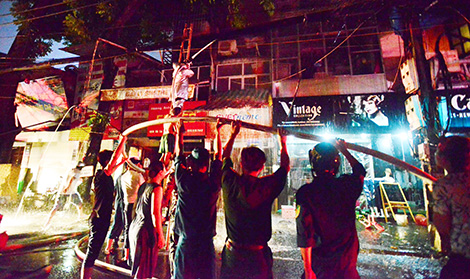 Đáng lo ngại hơn cả là kết cấu nhà yếu nên lửa cháy đến đâu, thì sụp đến đó. Anh em tiếp cận dập lửa, liên tục bị đe dọa bởi các vật rơi từ trên cao. Với quyết tâm bằng mọi biện pháp nhanh chóng khống chế ngọn lửa, lực lượng cứu hỏa đã chia thành nhiều mũi qua các khung nhà đã sập để tiếp cận tâm lửa điểm cháy lan…”.