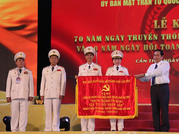 | Đồng chí Trần Thanh Mẫn – Bí thư Thành ủy tặng bức trướng cho Công an TP Cần Thơ và Cảnh sát PCCC TP Cần Thơ |