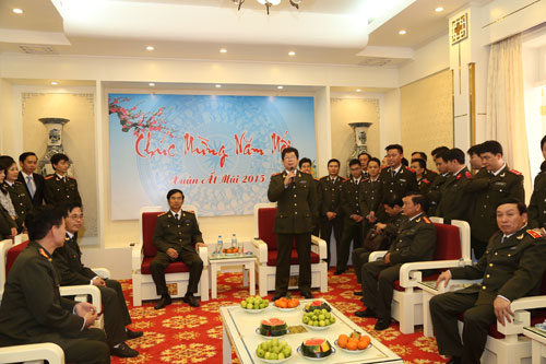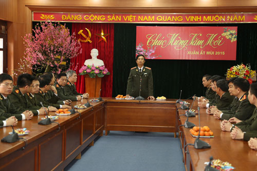 Thiếu tướng Nguyễn Tiến Bền, Cục trưởng Cục Tài chính; Thiếu tướng Trần Gia Cường, Cục trưởng Cục Đối ngoại Bộ Công an đã báo cáo kết quả công tác năm 2014; nhiệm vụ công tác năm 2015 và công tác trực ban, trực chiến trước, trong và sau Tết cũng như thực hiện nhiệm vụ trong những tháng đầu năm 2015.