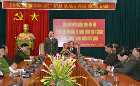 Sau khi nghe lãnh đạo Công an tỉnh báo cáo kết quả công tác năm 2014, đồng chí Thứ trưởng Thường trực lưu ý, năm 2015 là năm có nhiều ngày lễ lớn, nhiều sự kiện quan trọng của đất nước, đặt ra cho lực lượng CAND nói chung và Công an Tuyên Quang nói riêng những nhiệm vụ nặng nề và cấp bách.