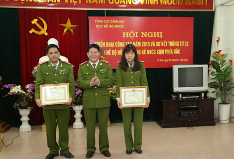 | Thiếu tướng Nguyễn Huy Mạ,Cục trưởng Cục Hồ sơ nghiệp vụ Cảnh sát trao thưởng cho tập thể, cá nhân có thành tích xuất sắc . |