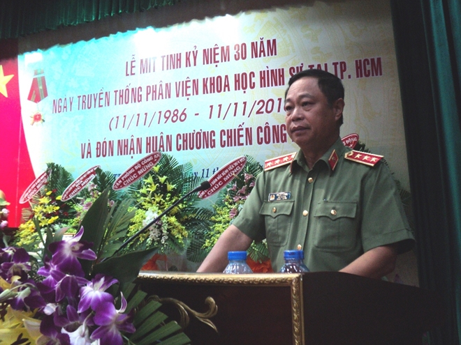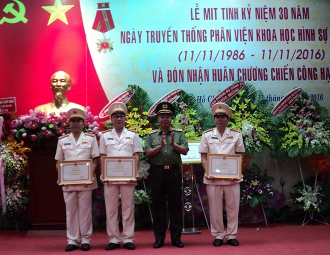 Ngày 11-11, tại TP Hồ Chí Minh, Phân viện Khoa học hình sự - Bộ Công an (C54B) đã tổ chức Lễ mít tinh kỷ niệm 30 năm Ngày truyền thống Phân viện Khoa học hình sự - Bộ Công an (11/11/1986 – 11/11/2016) và đón nhận Huân chương Chiến công hạng Ba. Thượng tướng Phạm Dũng, Thứ trưởng Bộ Công an đến dự và chỉ đạo buổi lễ.